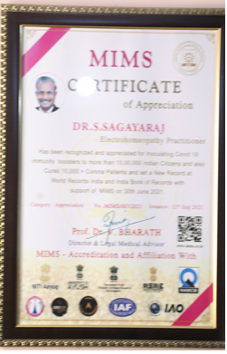 Last year I had severe cold with runny nose and felt feverish. I consulted Dr. Sagayaraj who prescribed simple electro homeopathy remedy. After taking a single dose, I was relieved off the cold and the temperature came down. We followed flu diet protocol for three days and recovered fully. As he is practicing Naturopathy and Acupuncture as well, he would suggest to change our life style and adopt natural diet to improve immunity. I am benefitted indeed, to a great extent. The credit goes to him